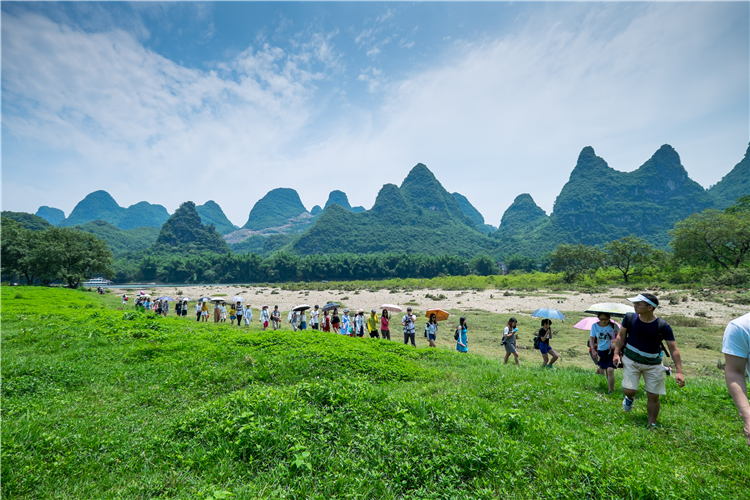 过渡后继续沿【漓江边徒步】,约5公里(全程不晒,有树荫),前往【二十元人民币背景地】,记得拿出一张新版20元人民币出来对照一下哦~