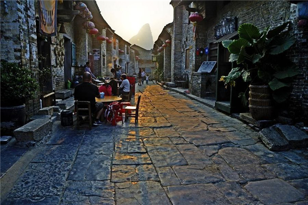漓江上一颗璀璨的明珠,位于阳朔县东北部。20元人民币的背景地就是在兴坪。具有1700多年历史,各类砖瓦结构的古建筑大部分保存完好,古街的东南侧狮子旦为熙平县城遗址,城墙轮廓尚清,随处可见古砖瓦陶瓷残片,只是原来车马来往人看人的繁华县城,呈现出一派青山幽幽、村舍几座的肃静氛围。