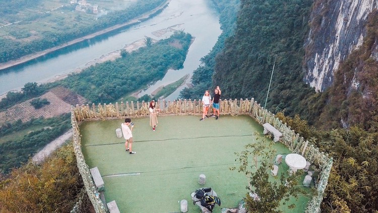 11:00 前往漓江。经过盘缠山路,大约40分钟车程,到达网红点漓江第一湾【相公山】。