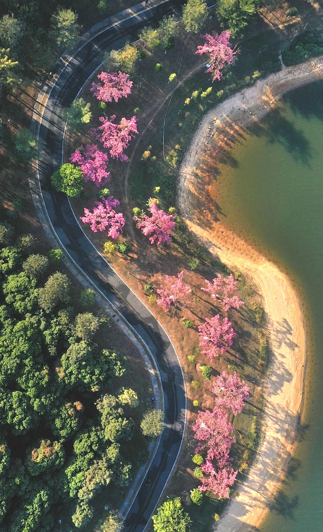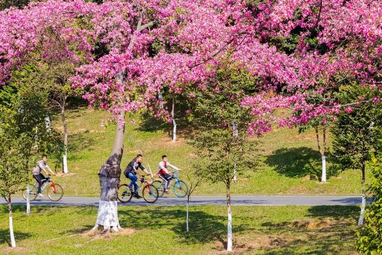 长达5公里的花海大道,异木棉花进入盛花期,粉色花海遍布,美得像幅画。