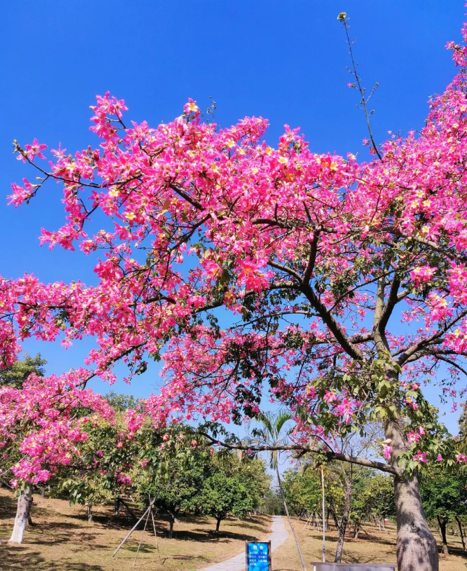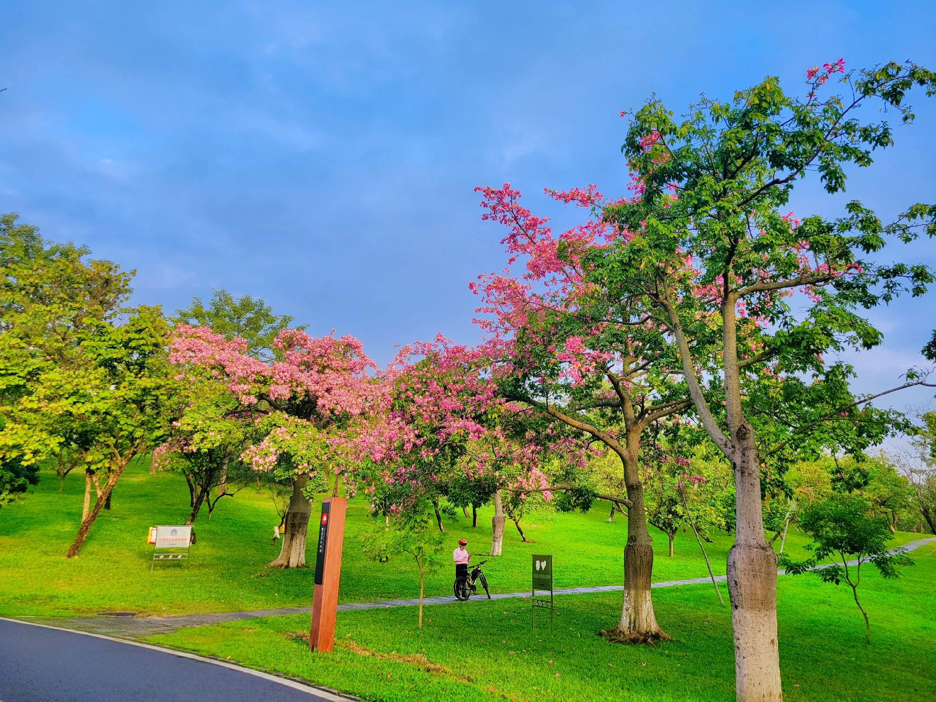 但是松山湖的异木棉花才刚刚进入盛花期