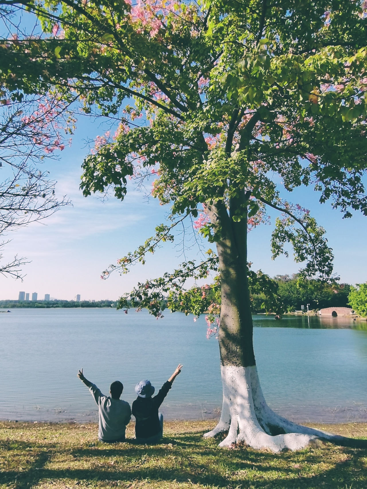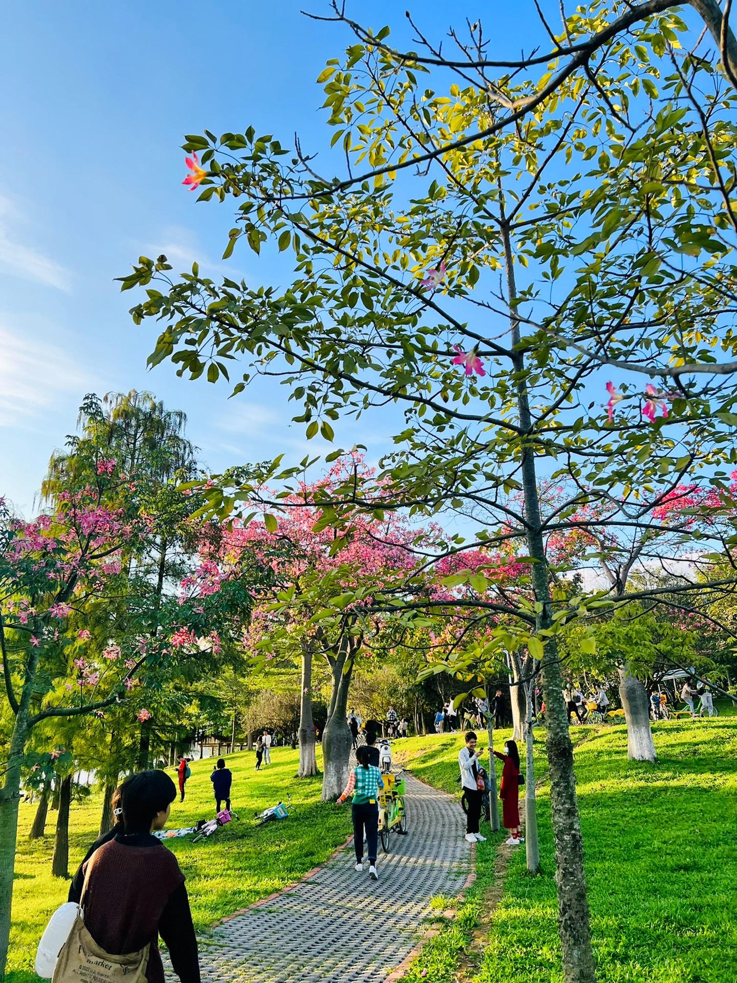 13:30 饭后抵达松山湖,美美美,松山湖这片异木棉已成粉色世界~
