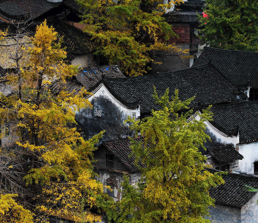 11:00 前往榜上村漠川乡榜上村,一路瓜果飘香,一路金黄银杏,它或许没有海洋乡的名气大,但丝毫不比海洋的差,大树插落于山野之中、小溪流水旁,它的美,不可言喻(往年最火爆的地方);村内桂北古民居非常有特色,石板路、福字街、黑砖土瓦木屋、村里有一棵需十几人才能环抱的巨大樟树~自由午餐,品味桂北特色美食,等待美食之余,亦可欣赏榜上银杏,美哉;