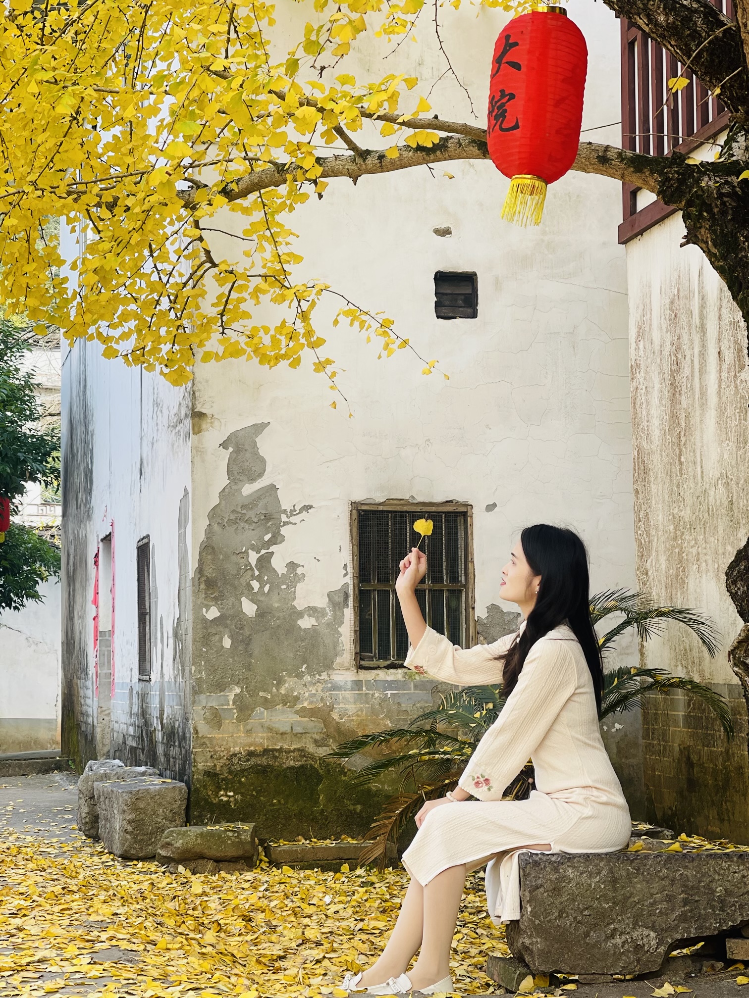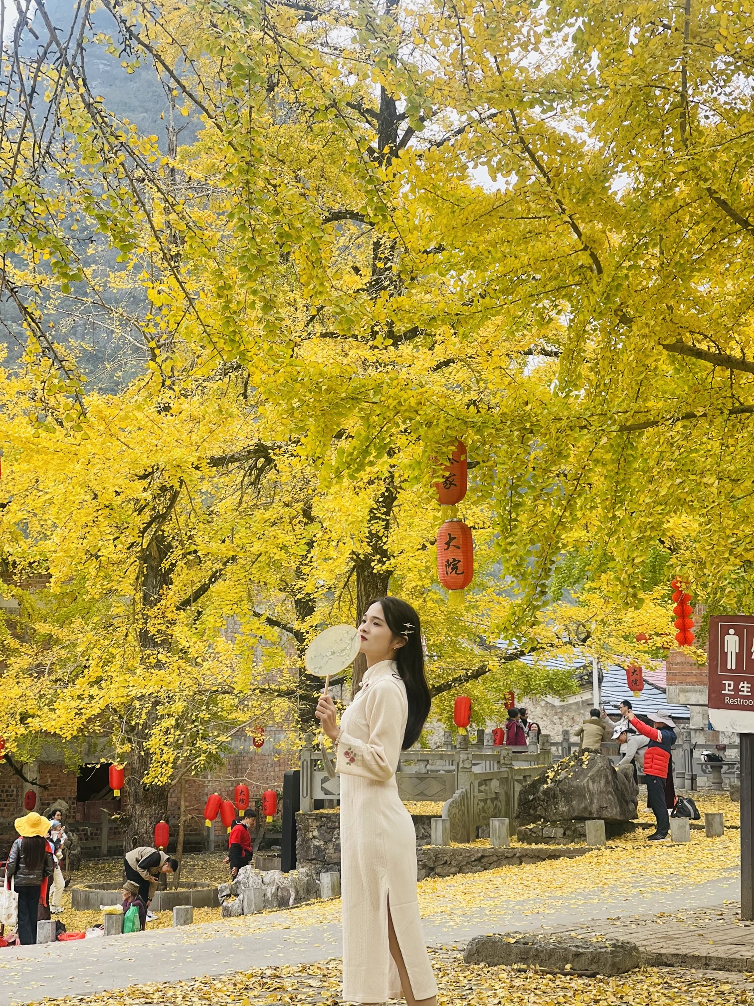 11:00到达秦家大院,可爬上楼顶或者山坡俯瞰整个村庄,可去田间摘罗汉果,可漫步这一片土砖土瓦的巷子发呆,细细品味这古韵;村口有几棵千年银杏,一阵风吹来秋叶随风飘落的诗意。。。也可以翻越一个山坡,山上松树林,枫叶林,银杏林遍布,在深秋时,这里由如是一幅油画~