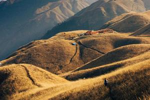 苍翠的绿色渐渐变深秋的金黄,延绵起伏的群山之间,一片金黄,壮阔之美丝毫不输边疆秋日风光。