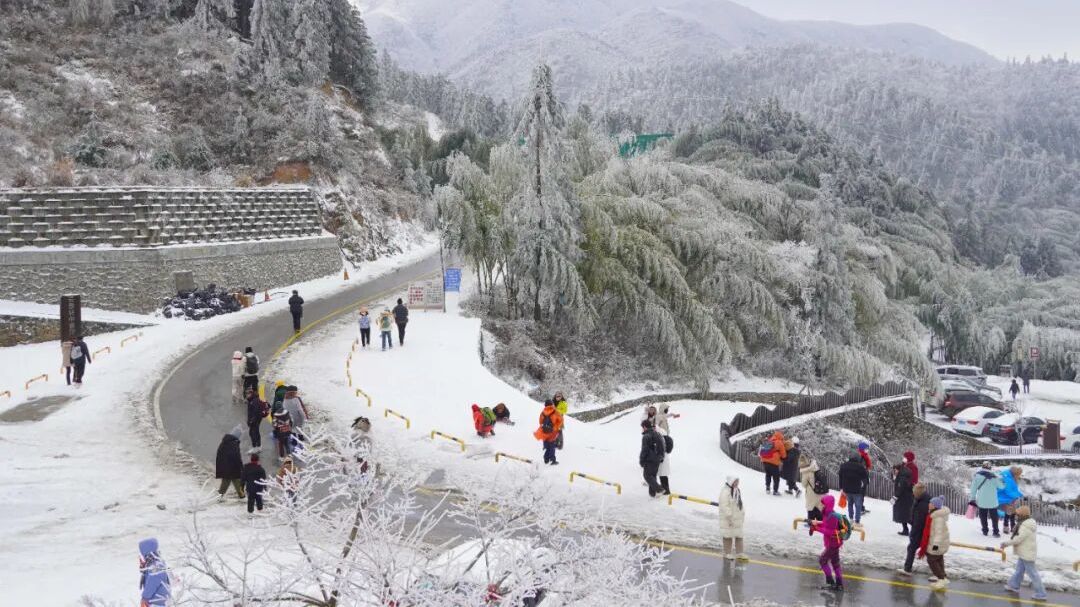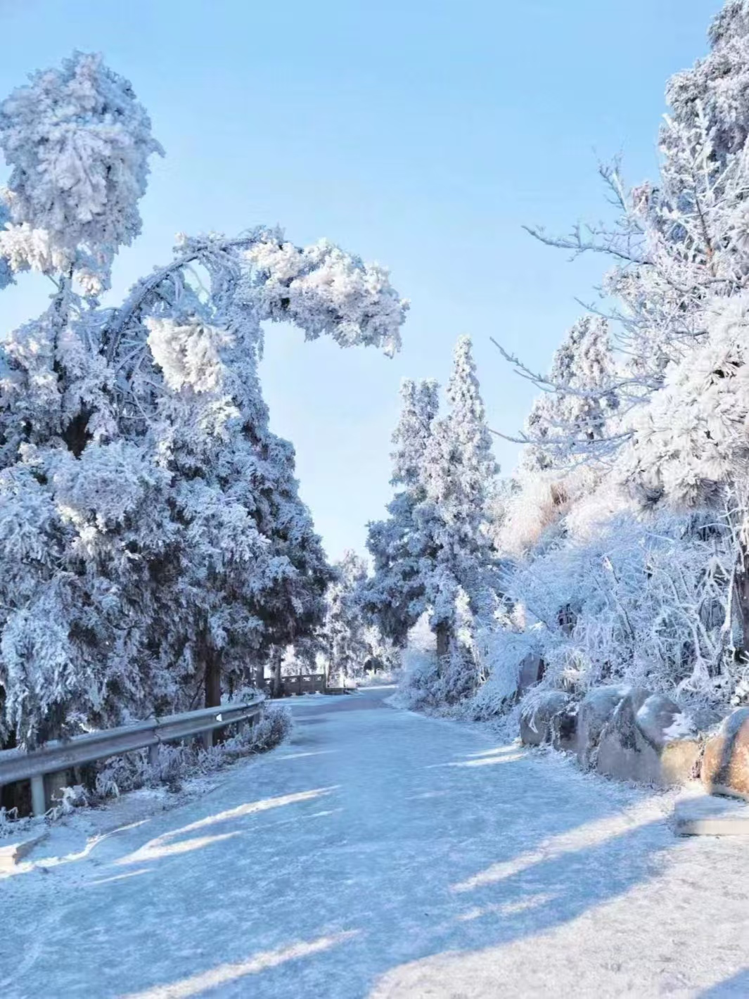 景区游览:为环山道路赏景,微微爬坡,正常两小时即可走到山顶,中途能看到雾凇冰挂。
