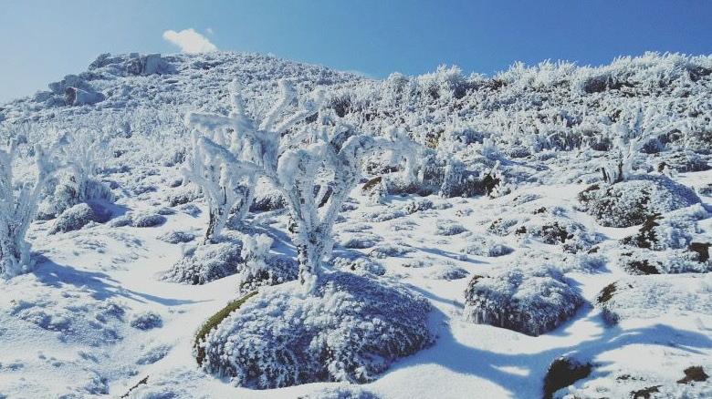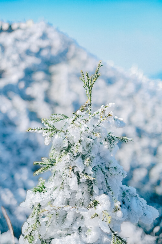 最佳观赏期:云冰山冰雪期仅限寒潮来袭,12月至次年2月最常见。当冷空气南下时,冷暖气流在山顶交汇碰撞,当地气温降至0-5°C左右,就有可能出现雾凇冰挂景观。雪后初晴的天气最出片!