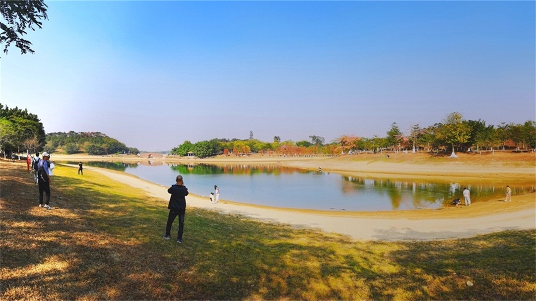 13:30 到达【松山湖风景区】,这里的松湖烟雨被评选为东莞八景之首。沿湖漫步,与紫荆花海、异木棉花海、落羽杉相遇~有人说:“一树异木棉花,姹紫嫣红。一片落羽杉林,绚烂整个冬季。”靓爆镜的初冬,就在松山湖等你
