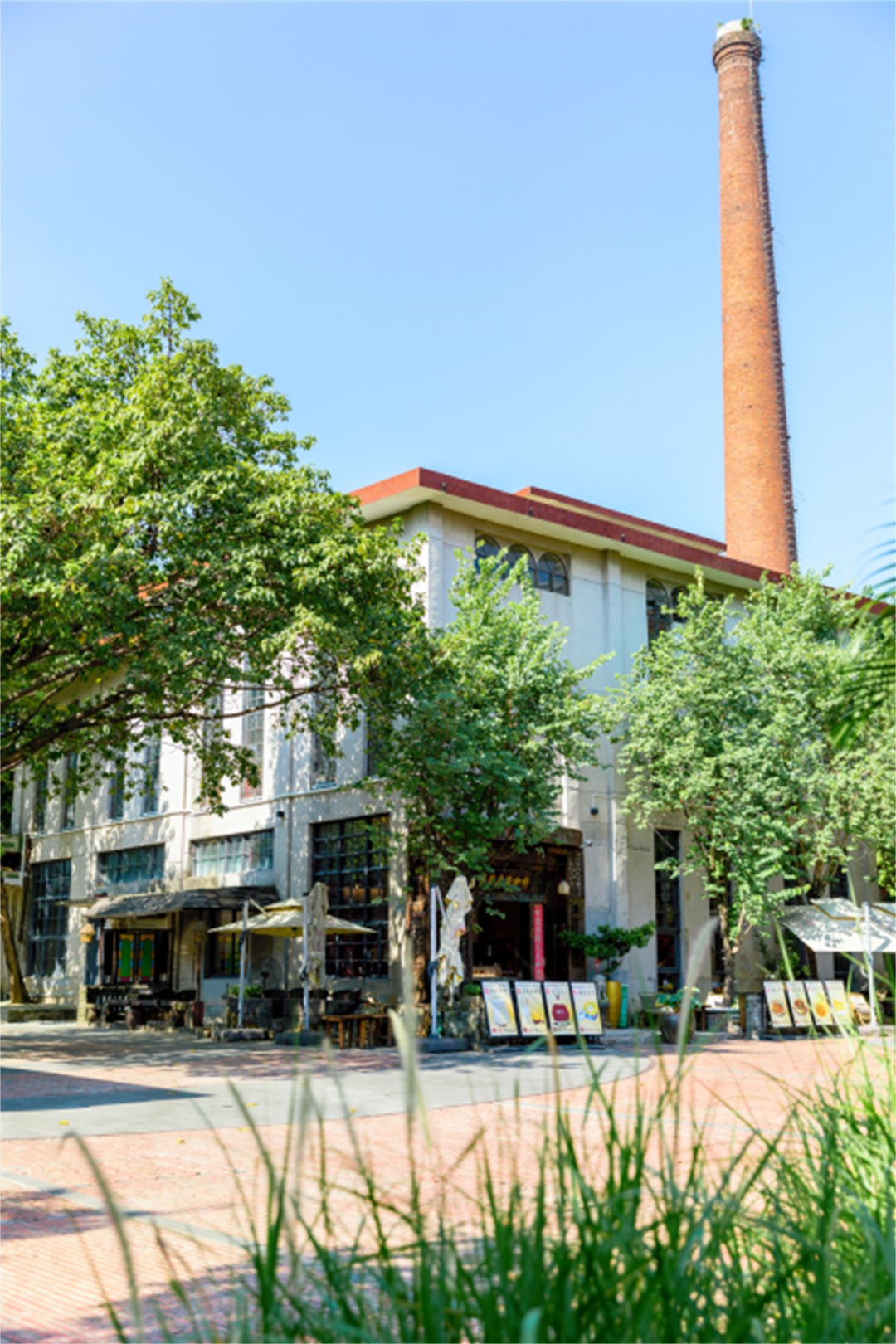 11:00 到达【鳒鱼洲文创园】,秉持“修旧如旧”的改造理念,让历史建筑焕发新生,成为了网红打卡点。曾经的厂房、烟囱、实验室,继续见证时代的变迁。这里有各色料理店,午餐自由解决