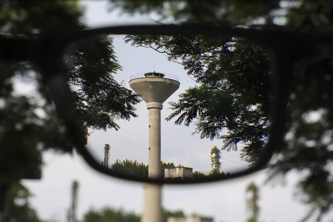 斑驳的门牌、高大的树木、生锈的铁桶…