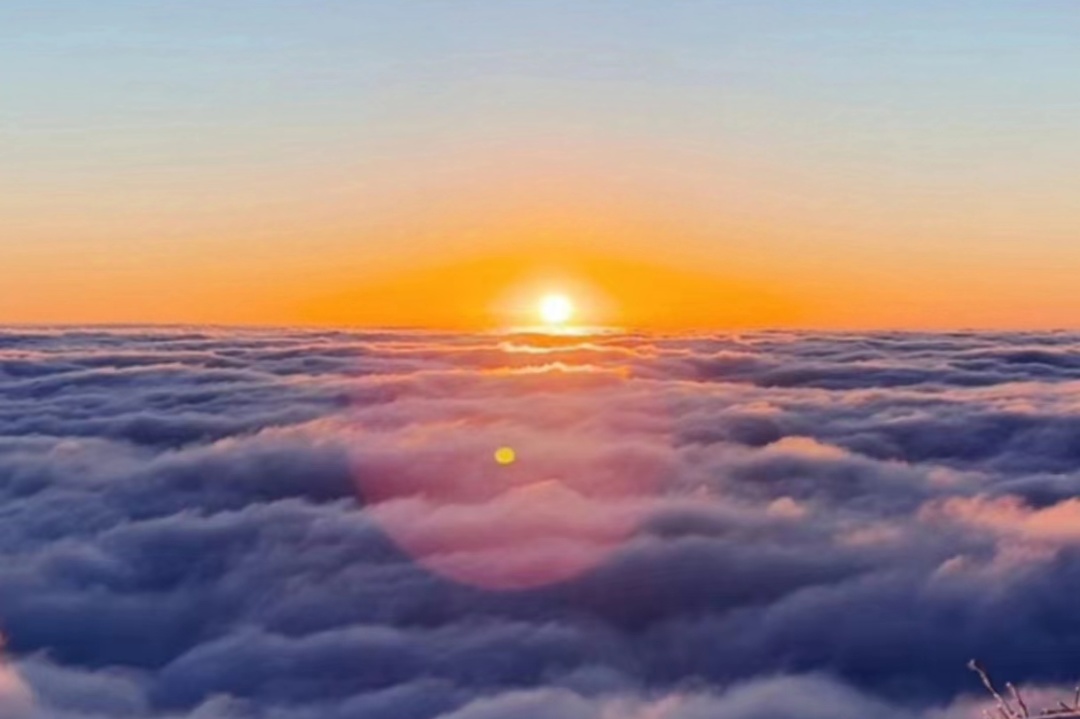 06:30 日出时间来咯!看日出和云海,武功日照、万千云海,然后沐浴着清晨里的阳光,徒步于天地之间的云海,云端漫步。(行程中最值得期待的路段)