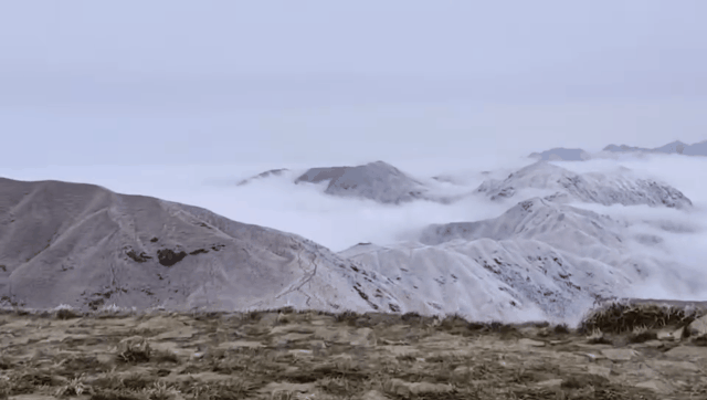 13:30 开始这条路的视野变得开阔,您会感觉仿佛在云中漫步。一侧是深邃的山谷,另一侧是起伏的山峦,云雾时常从身边飘过。远方都是高山草甸,有可能一转角就能看到云海,这就是山脊线的魅力,拍照留念;