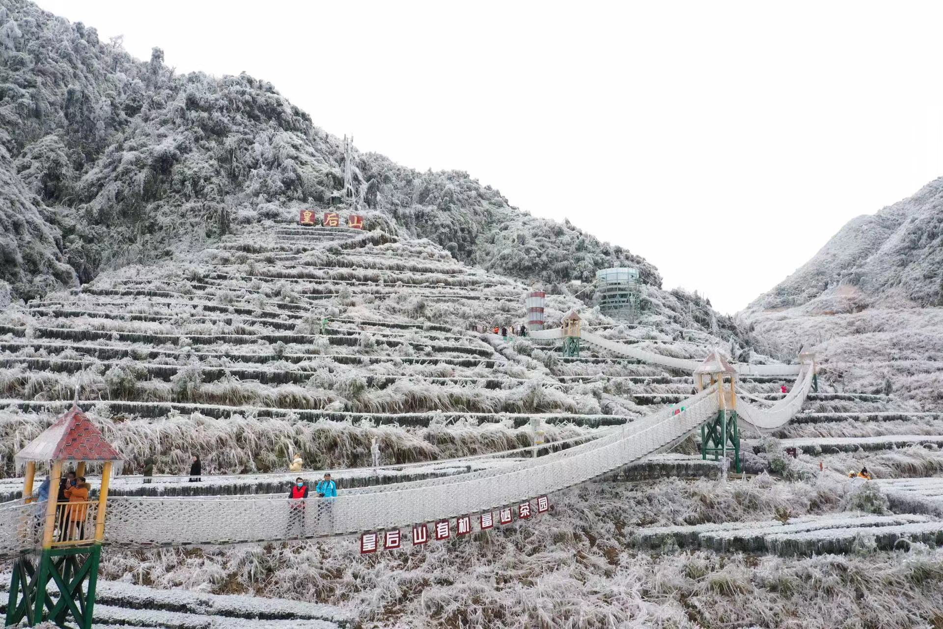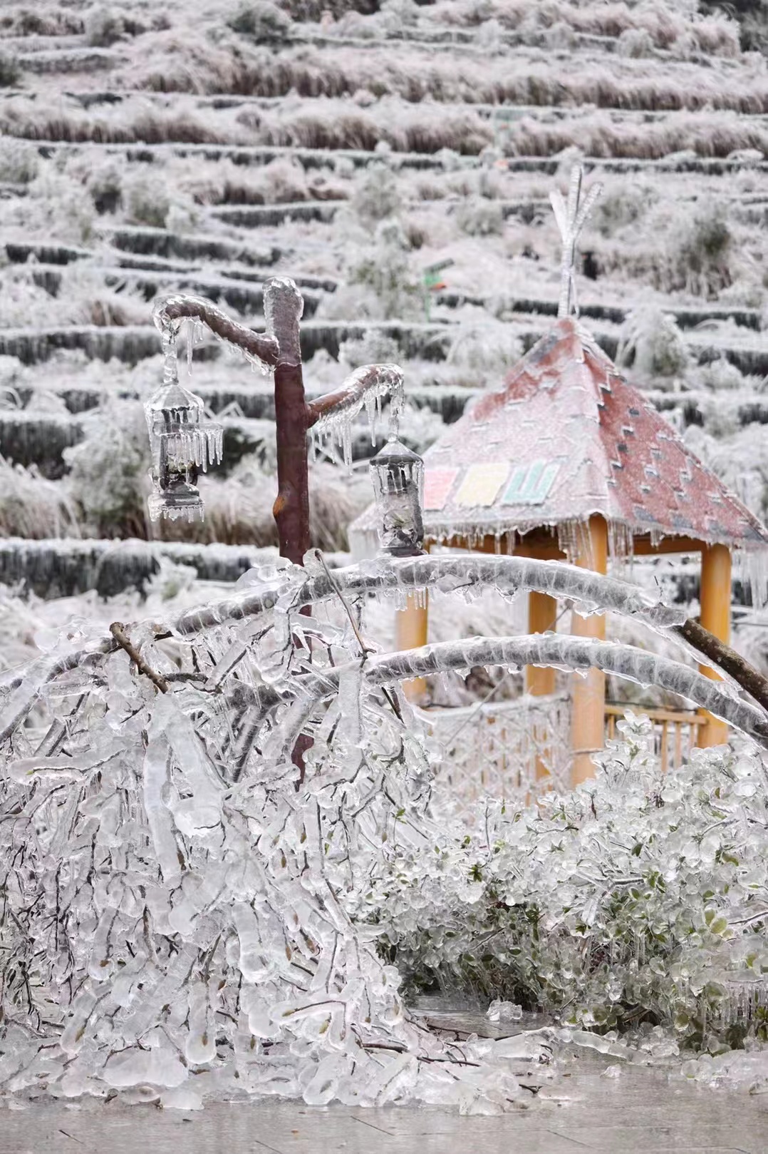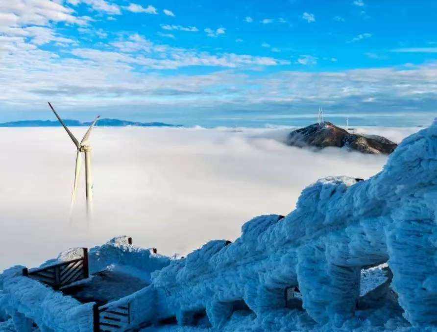 云冰山,位于湖南蓝山县南风坳区域与广东省连州市交界,海拔1400米,冬天的景色美得让人惊叹不已。