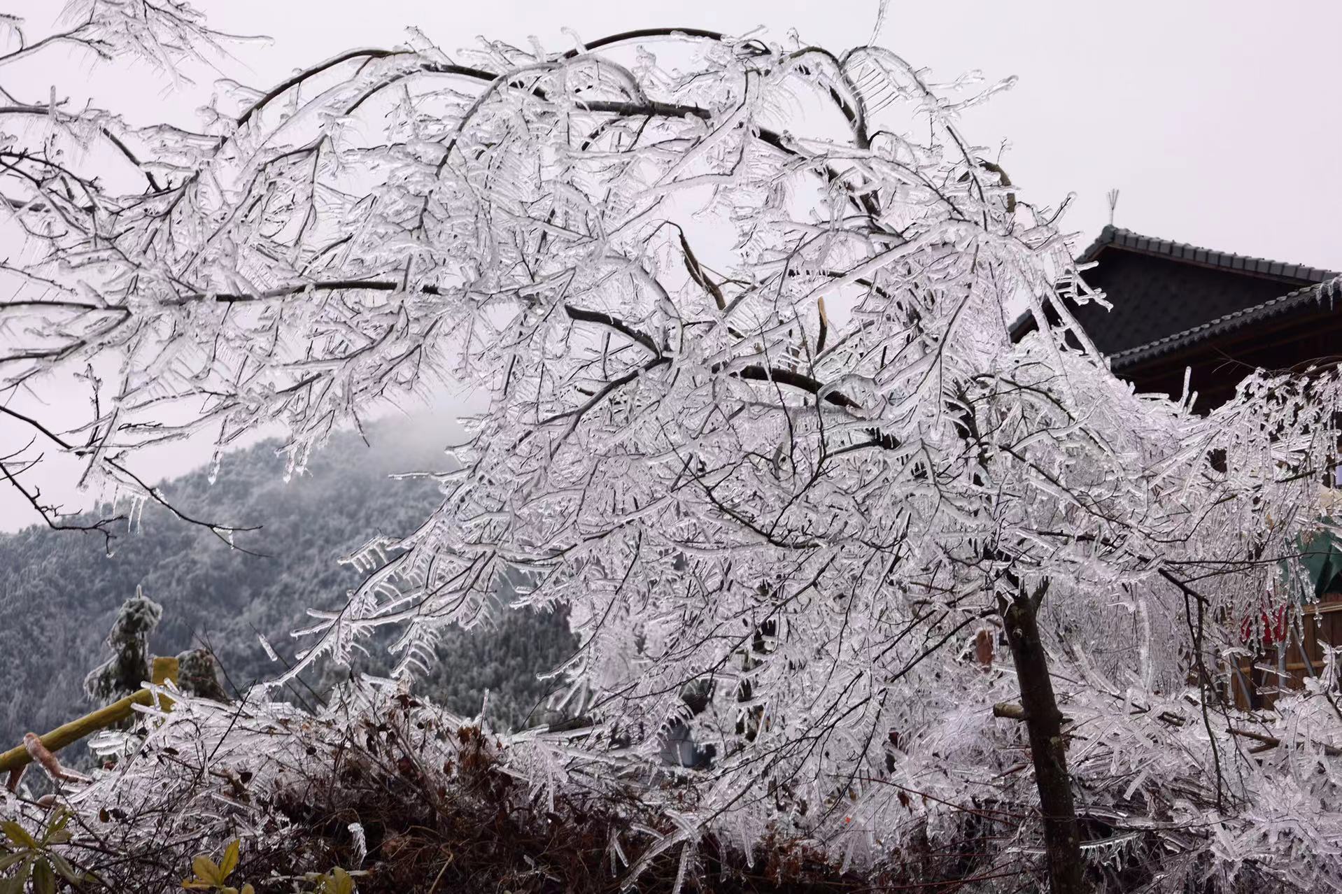 各种植被披挂长长的冰棱晶莹剔透,被誉为“雪芽”