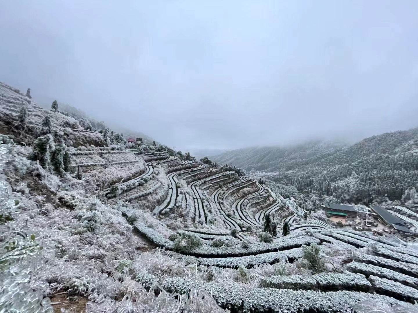 12:00 登雪峰,赏雾凇冰挂,拍照打卡,然后原路返回到网红茶园;