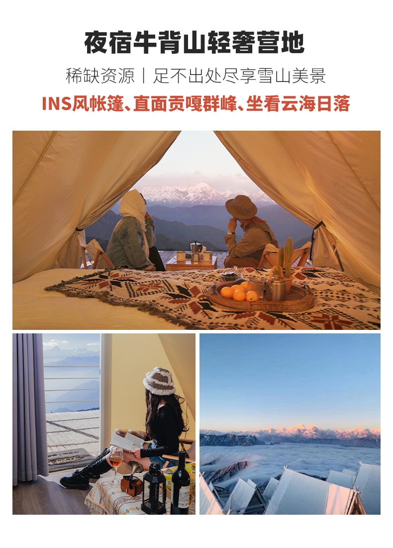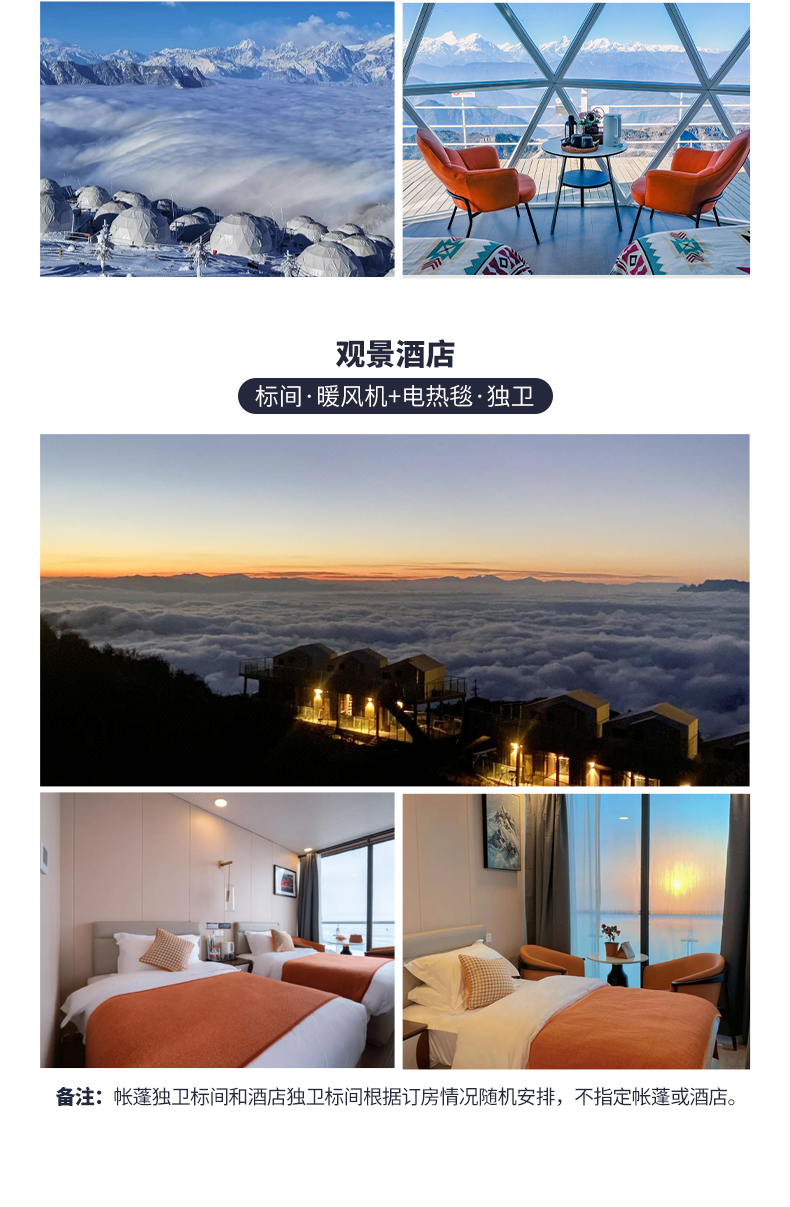 第16期春节特辑,3480元/人,单房差1300元/人,牛背山升级球形帐篷(独卫)/酒店(独卫)2人标准间,+350元/人。