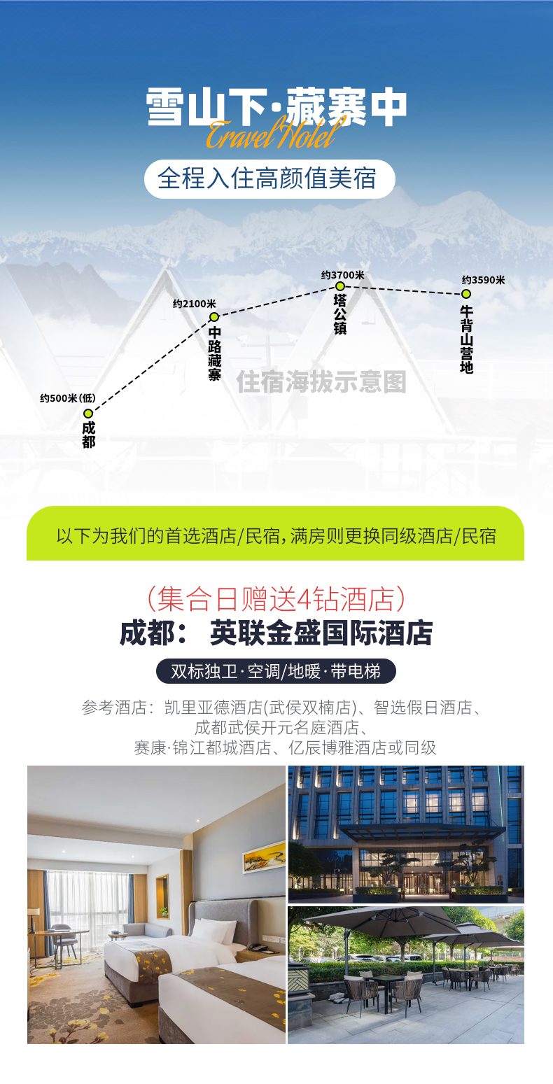 2、住宿:全程4晚标间住宿(含集合日赠送1晚4钻酒店、不住不退);