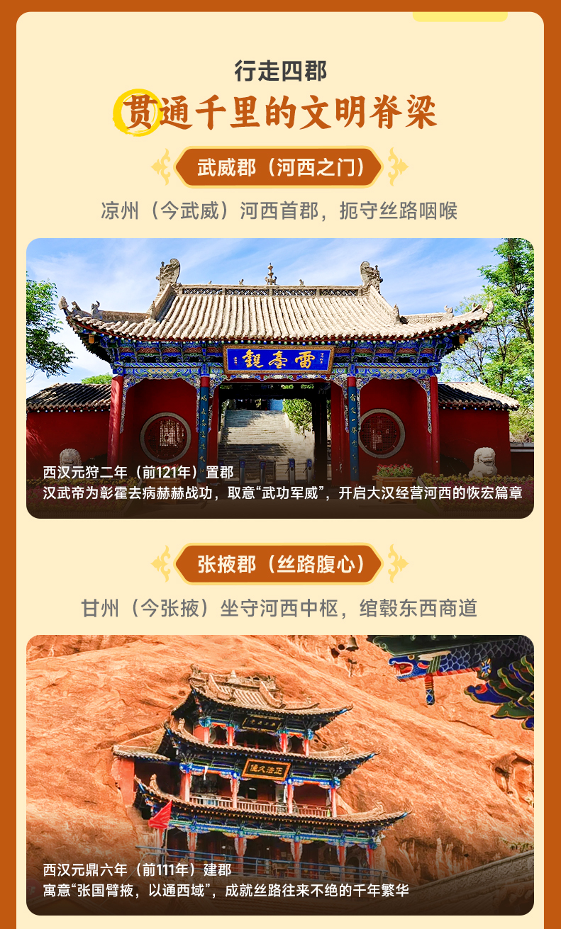 傍晚,抵达敦煌后沉浸式观看《又见敦煌》大型实景演出(费用自理,自愿选择)。通过行走式观演,穿越张骞、玄奘、悟空的时空片段,重现丝路千年文明交融的壮美史诗。