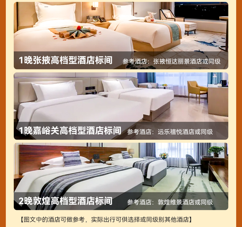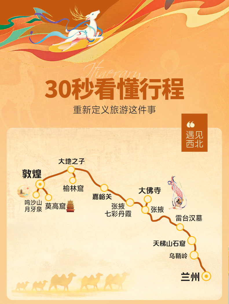 1、早上出发时间以莫高窟预约时间为准,若时间推迟,后续行程时间顺延