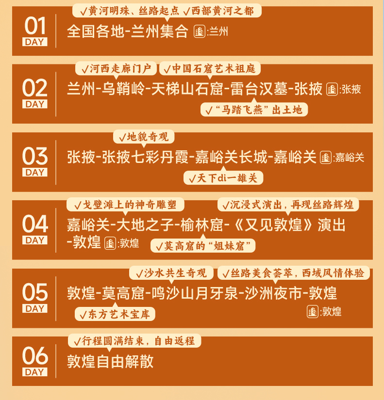 1、交通:兰州集合及敦煌返程往返大交通自理