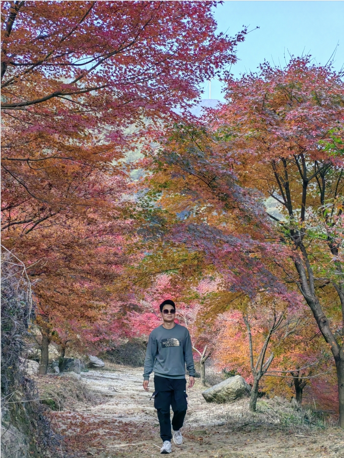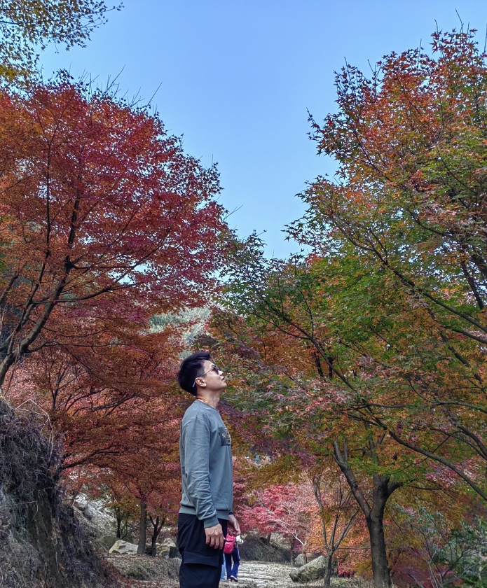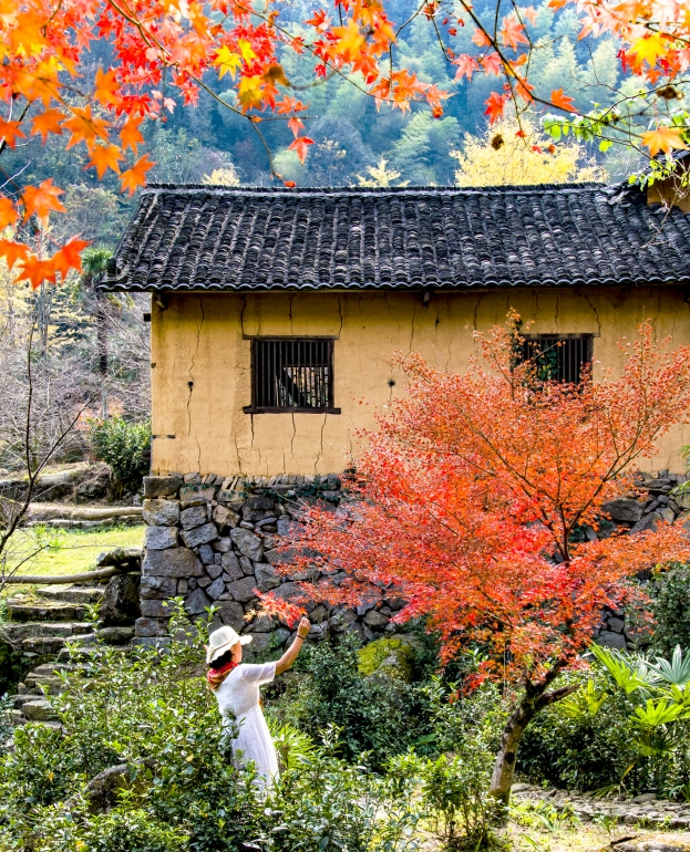 漫山的枫叶里,深红、粉红、橙红、橘红,层次分明