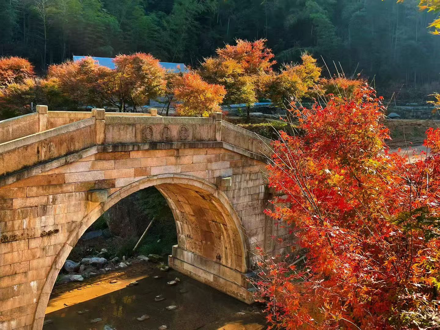 从高空俯瞰,火红的枫叶与竹林山色构成了一幅秋日“枫”景画卷。