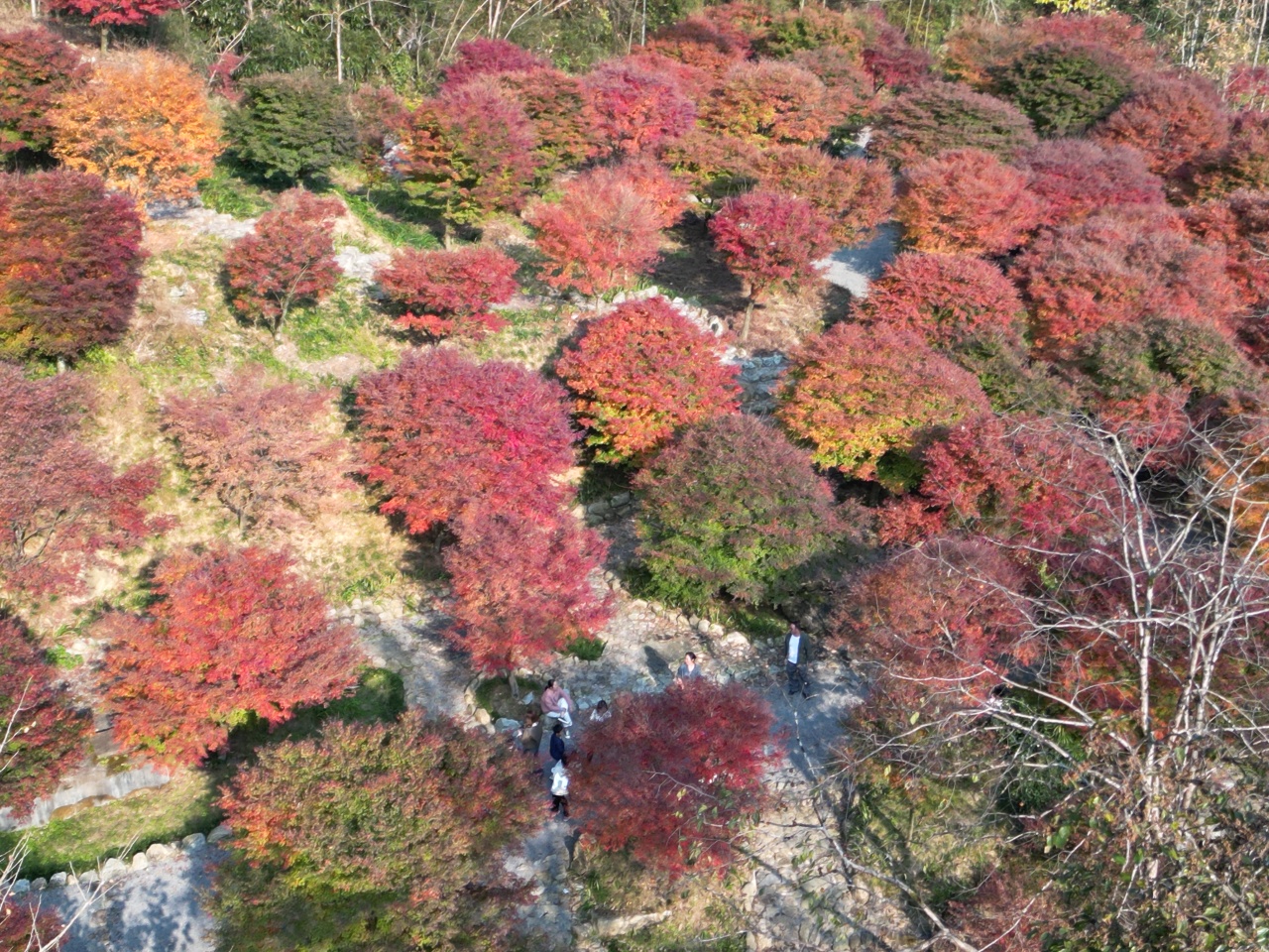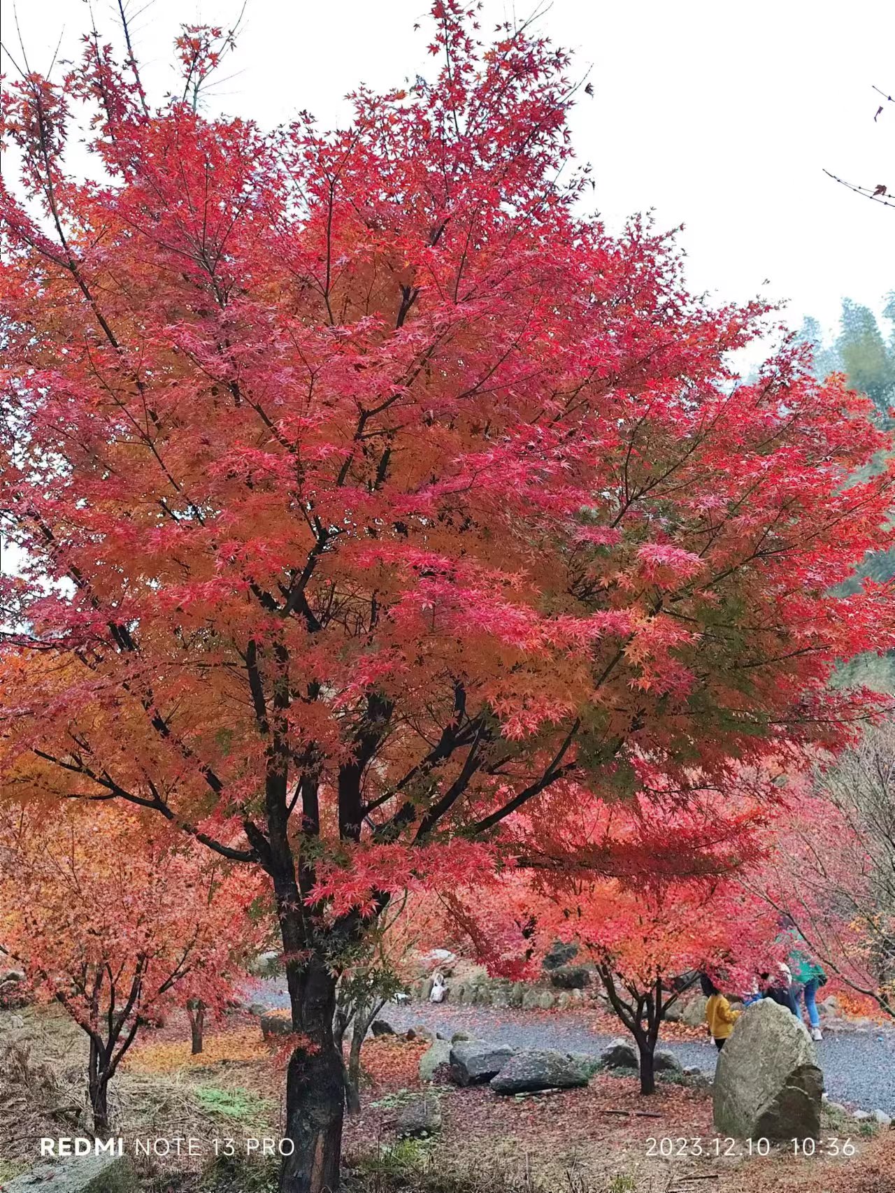 12:30 到达【十万株枫叶林】,抬眼望去,层层叠叠的枫叶红得浓烈,红得似火,染红了山谷,染红了山涧,就像一条鲜红的地毯铺在蜿蜒曲折的山谷中,美轮美奂,美不胜收(当地有少量农庄,最好带上干粮)