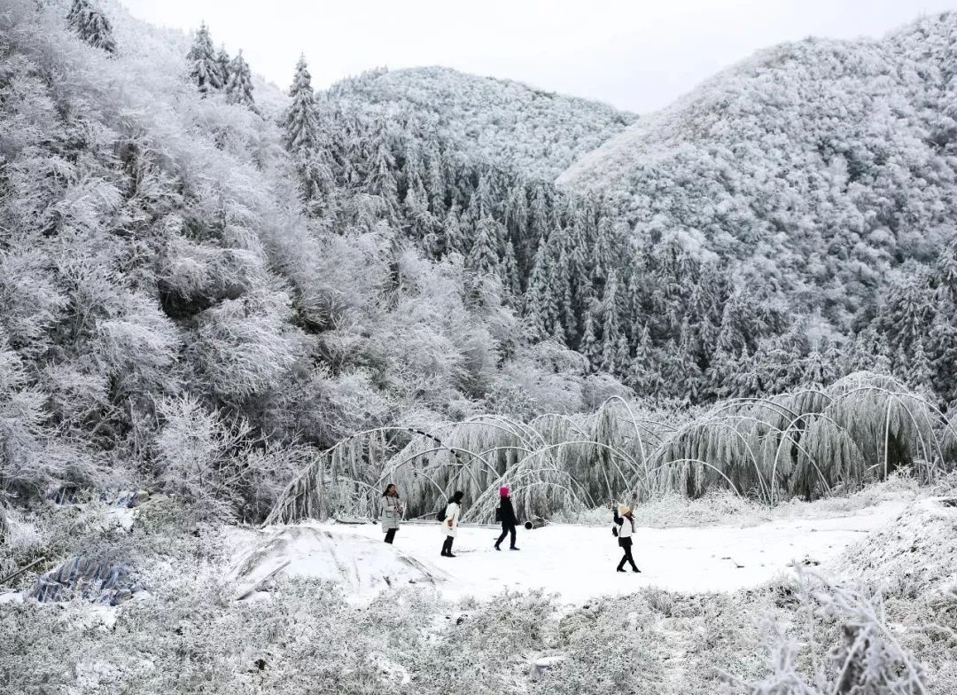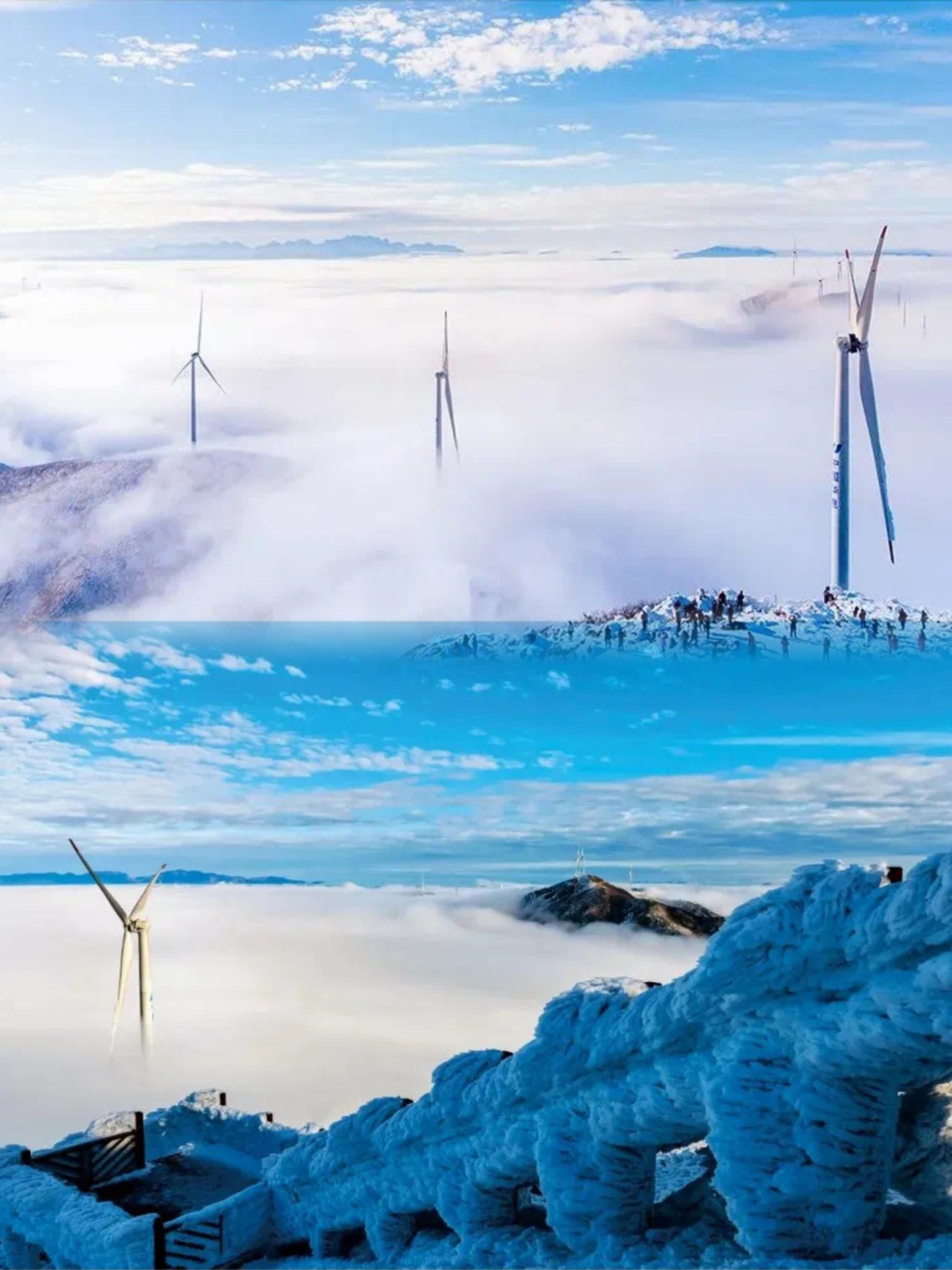 南方雪乡,云的故乡,一山四景,半山雾凇冰挂,山顶雪景云海。