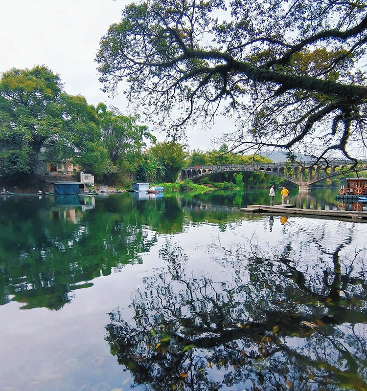 中午前往游览中渡古镇,在这解决午餐。隐匿千年的中渡古镇依旧保持着原有的风貌,古树、古桥、古建、古街巷......走进其中,让人仿佛穿越历史,时光也慢了下来。江边的榕树有几百年的树龄,站在榕底下,与古桥合影,一种江南水乡美韵表现得淋漓尽致。