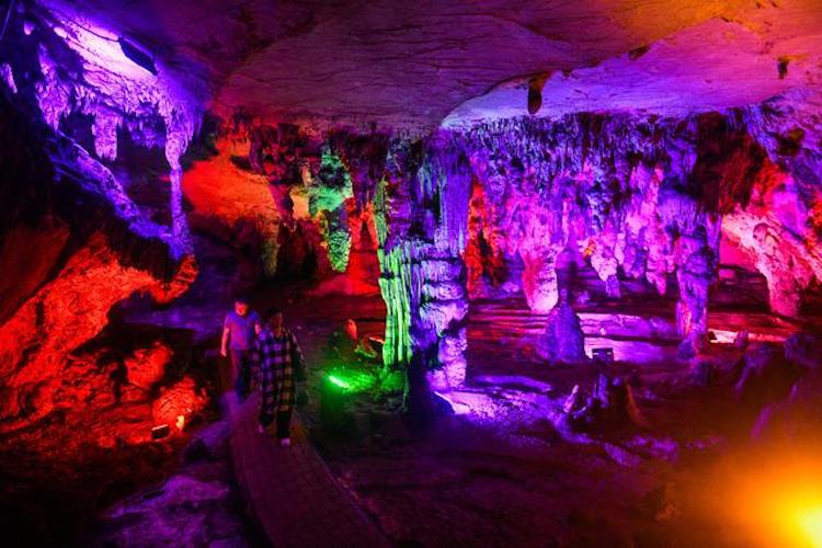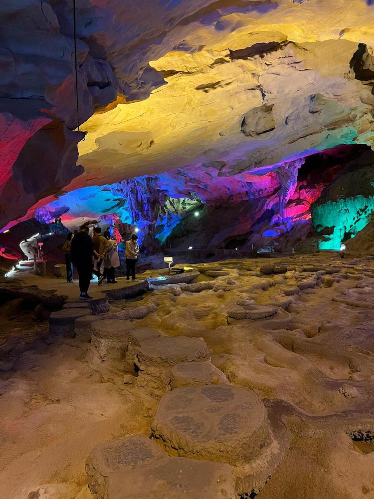九龙洞是一座水旱兼具的石灰岩溶洞,洞长660米,宽40—60米,九龙洞分为三个支洞,左洞中洞和右洞像梯田一样高低错落。洞内乳石形态万千,以“龙、藤、沙、池”为洞内四大奇观。