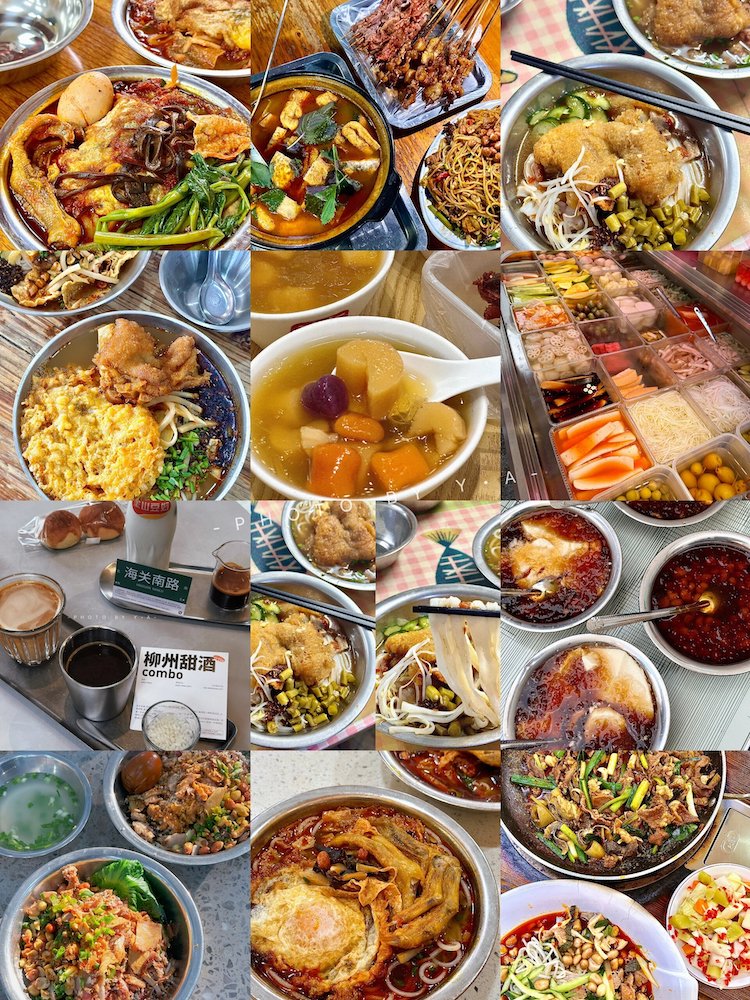除了螺蛳粉,这里还有汤粉、干捞粉、炒螺蛳粉、猪脚粉等各式各样的米粉以及牛杂、鸭脚煲、卤菜还有豆腐花、炒冰、木薯羹等甜品带着八个胃来都不够